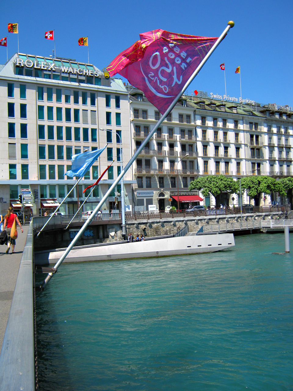 Dans le cadre du 450e anniversaire de l’Université de Genève, réalisation des différents supports qui ont parsemé la ville: flyers, affiches, kakémonos, drapeaux sur le pont du Mont Blanc